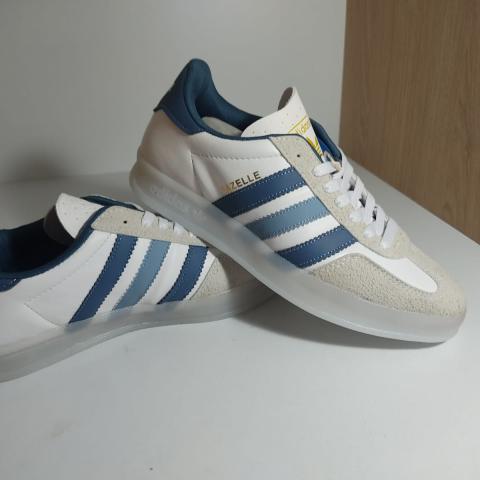 Adidas Gazelle Indoor Blanco con lineas azul hombre